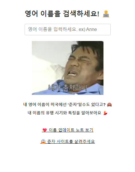 내가 춘자라니 사이트에 접속합니다. 첫 화면에서 직관적으로 검색창이 뜨면 그곳에 내가 검색할 이름을 영문으로 써줍니다. 한글이나 숫자, 특수문자는 입력이 되지 않습니다.