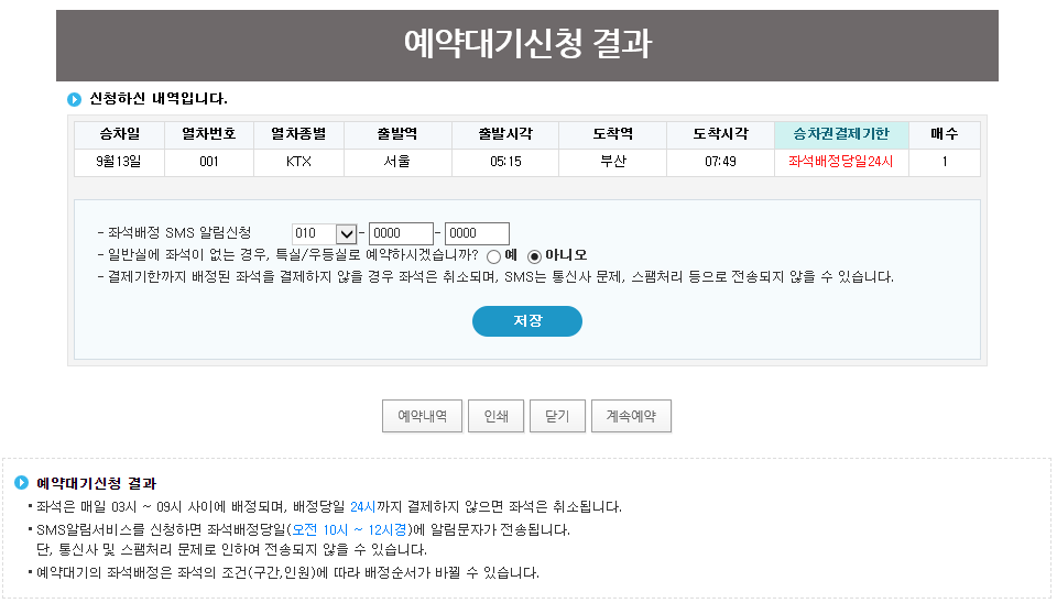 추석 기차표 취소표 예매