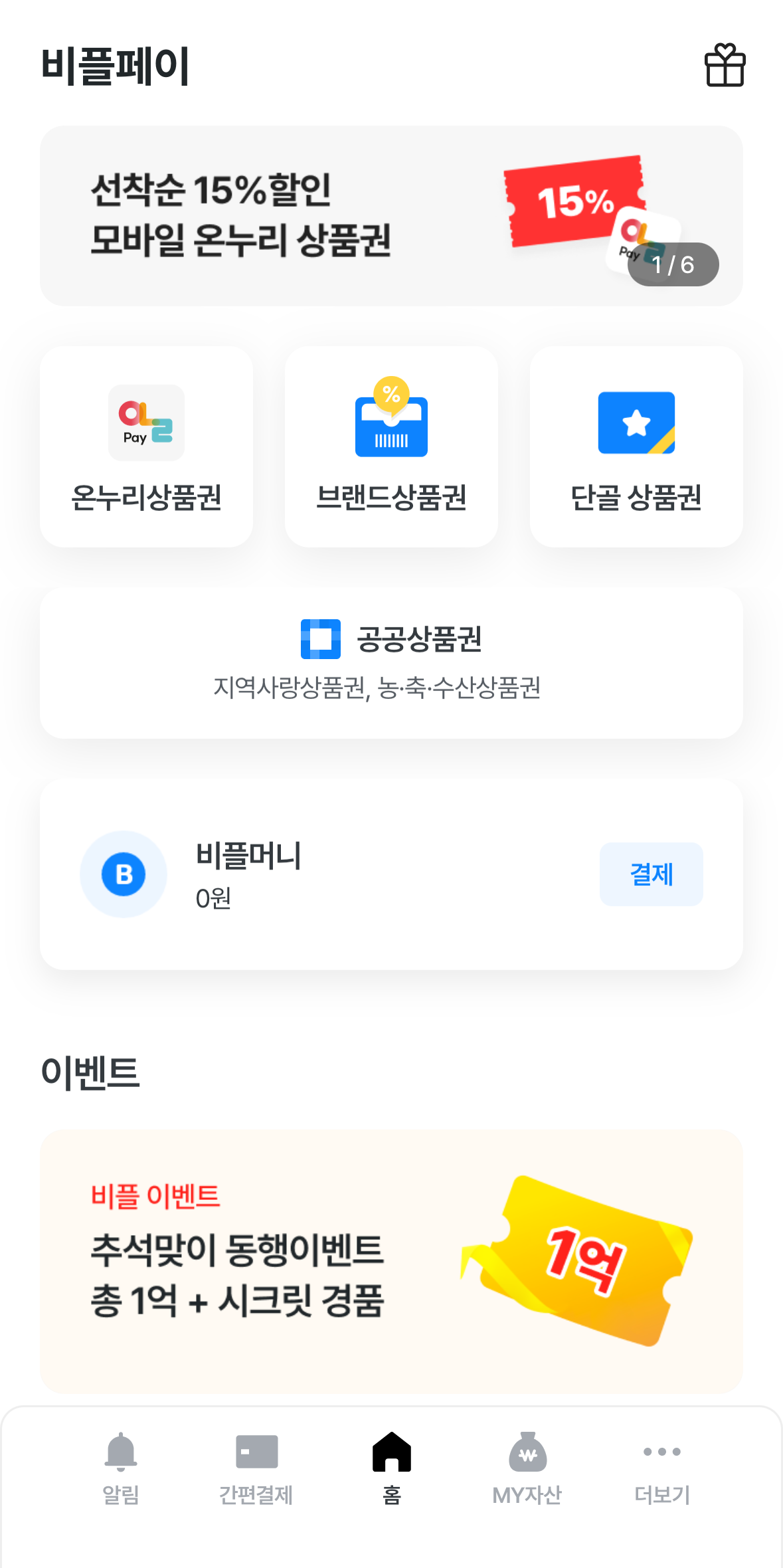 비플페이 어플 다운로드 후 본인인증으로 회원가입을 합니다. 홈 화면에서 '공공상품권'을 선택하고 서비스 이용 약관에 동의하면 상품권 구매 준비가 완료됩니다. +버튼을 눌러 상품권 종류를 선택 후 구매 금액 선택, 결제 계좌 등록 후 결제를 완료하면 사용준비 완료입니다. (농할상품권 뿐만 아니라 대한민국수산대전상품권도 비플페이에서 구매가능합니다!!)