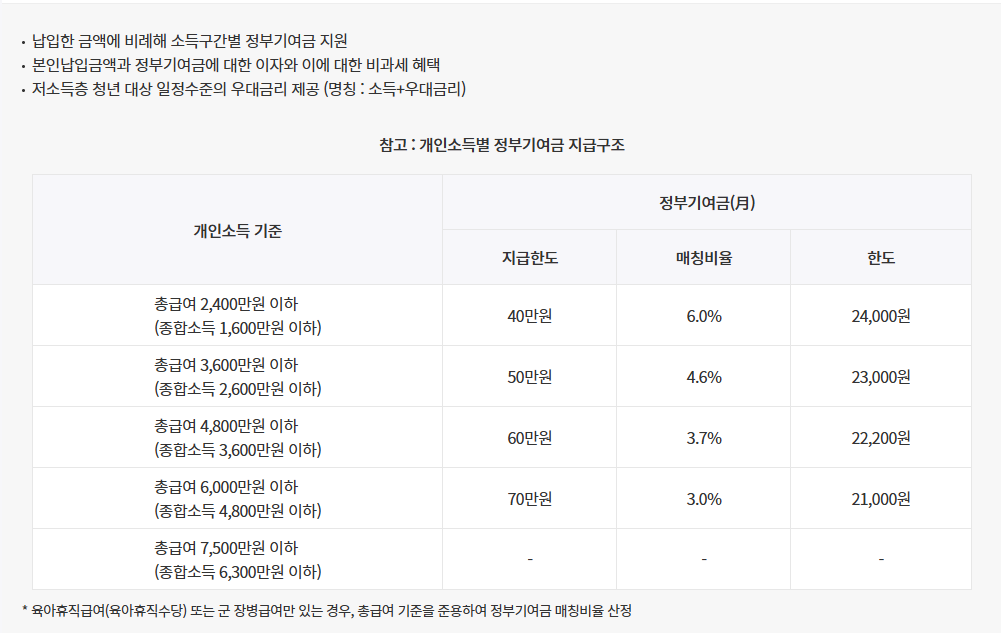 - 소득 6,000만원 이하 : 정부 기여금 지급, 하지만 금리는 약간 하락