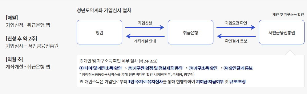 신청: 매월 지정된 은행 앱을 통해 가입 신청을 진행합니다.